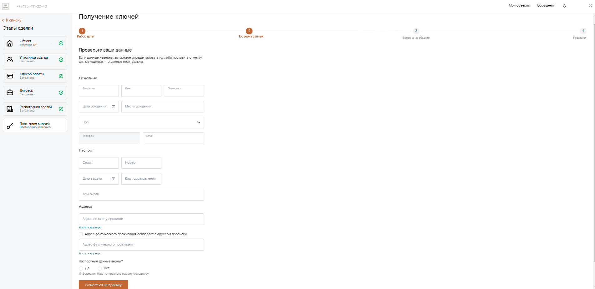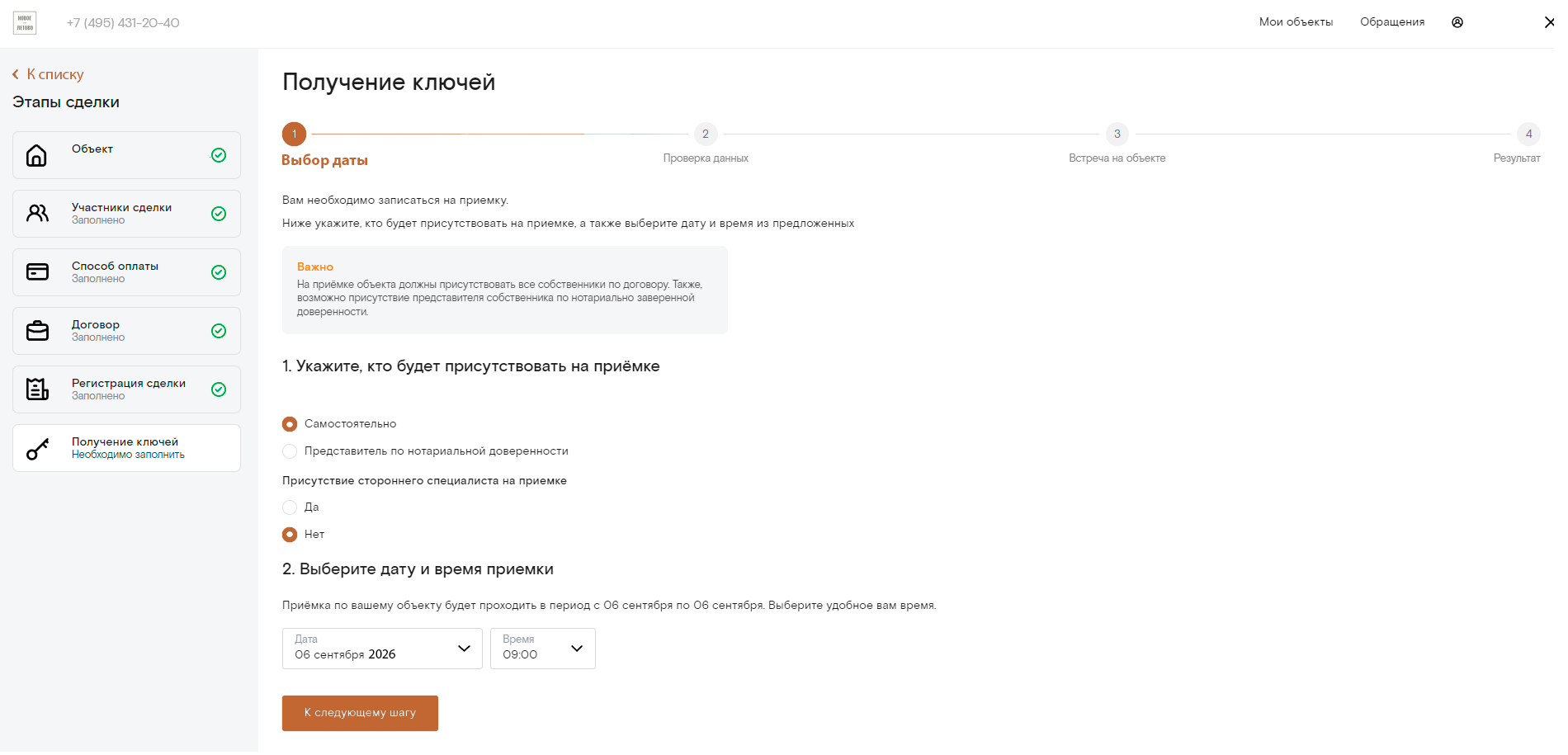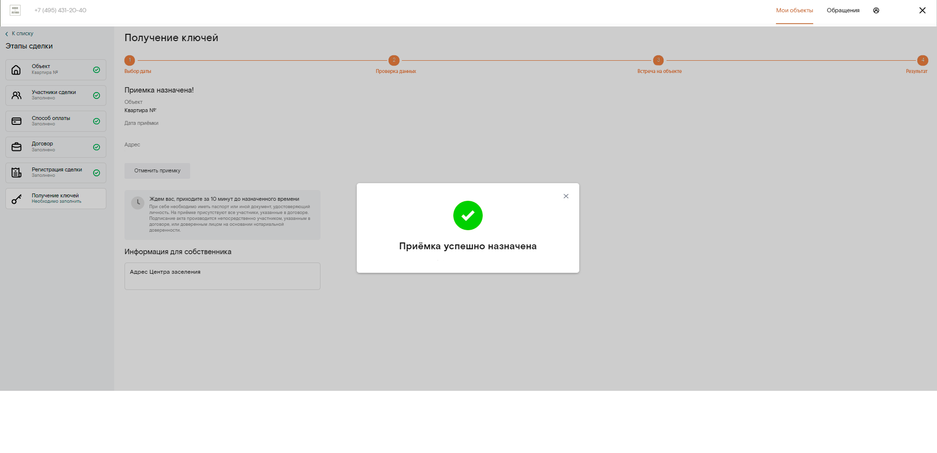 Шаг 2. На вкладке «Мои объекты» нажмите кнопку «Перейти к сделке» и заполните форму.